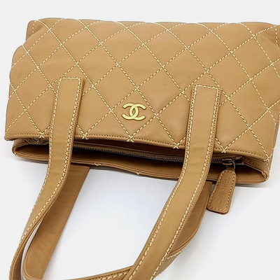 Chanel Brown Leather Wild Stitch Tote Bag 1223774 (коричневый, lpn31019342)