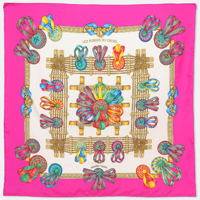 Hermès reimagines its iconic equestrian motif in fresh pink tones, highlighting the artistry behind the Les Rubans du Cheval design. Crafted in silk, it reflects the maison’s excellence in detail and printmaking. A versatile accessory, it enhances outfits with both playfulness and sophistication.