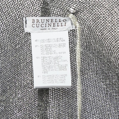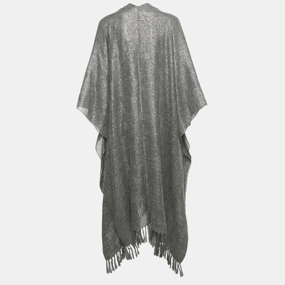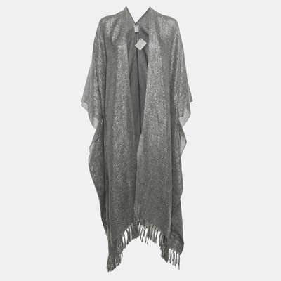 Brunello Cucinelli crafts understated opulence in this grey linen cape, woven with subtle lurex for a hint of shimmer. Fringed edges add fluid texture, while the relaxed cut embodies the brand’s hallmark of casual luxury. Draped over dresses or minimalist separates, it transforms everyday layering into a refined expression of Italian craftsmanship.