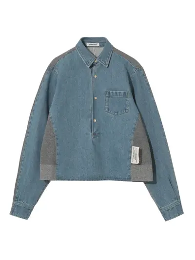 indigo blue and grey long sleeves snap button fastening patch pocket