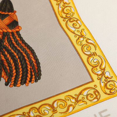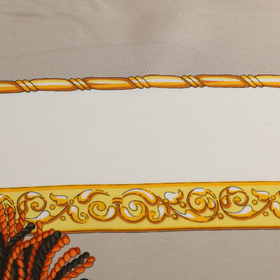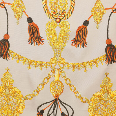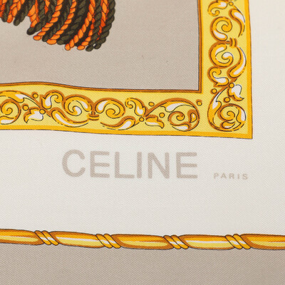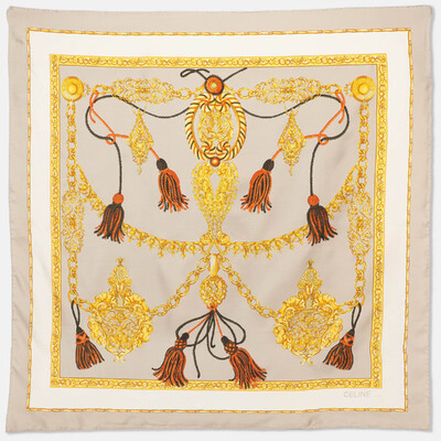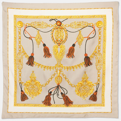 Celine channels playful refinement in this silk scarf, featuring a multicolor tassel inspired print. Lightweight and versatile, it adds dimension to everyday looks while nodding to the house’s chic, Parisian sensibility. A polished choice for accessorizing modern wardrobes.