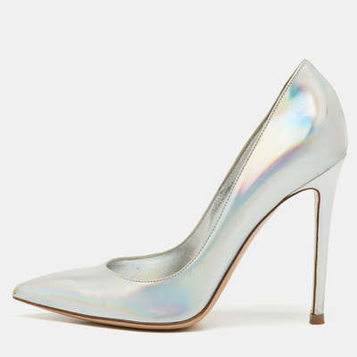 Gianvito Rossi Silver Holographic Leather Pointed Toe Pumps Size 36.5 1222666 - 1