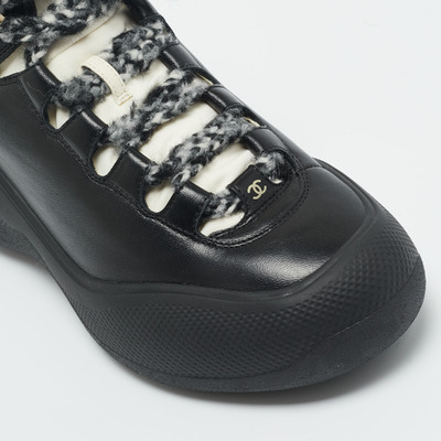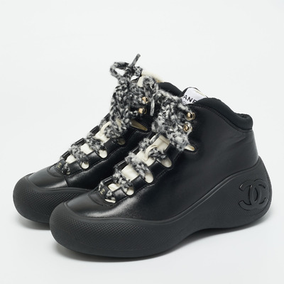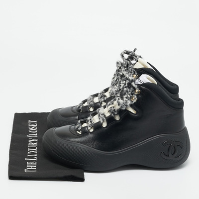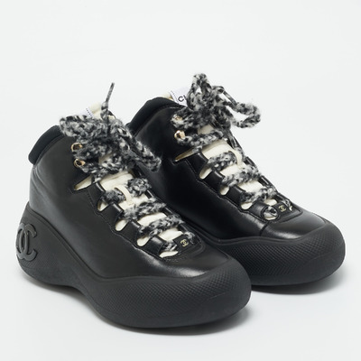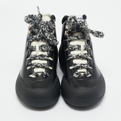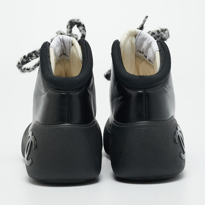 Chanel Black Leather and Nylon CC Chunky High Top Sneakers Size 39.5 1222733 (чёрный, lpn31019507)