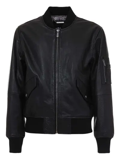 black zip fastening embossed detail ribbed hem ribbed cuffs chest pocket
