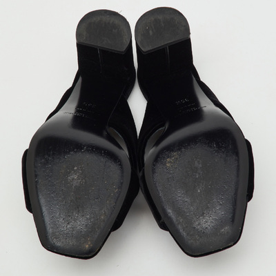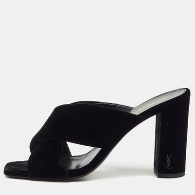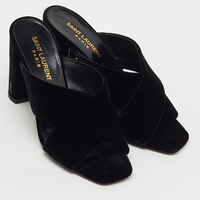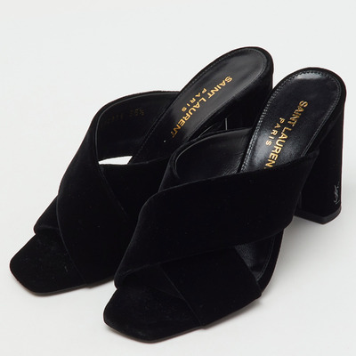 Saint Laurent’s Loulou slides are crafted in soft black velvet with a minimalist slide design. The block heel and luxurious texture make them effortlessly chic.