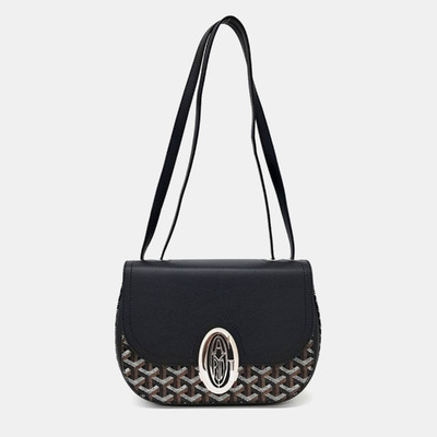 The Goyard Black Coated Canvas and Leather 233 Bag combines durability with signature style. Crafted from coated canvas with leather accents, it features a structured design ideal for carrying daily essentials. Sleek and versatile, this bag brings a recognizable Goyard touch to everyday wear while maintaining a practical, functional appeal.