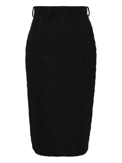 black lace fabric pencil shape high waist concealed zip fastening straight hem