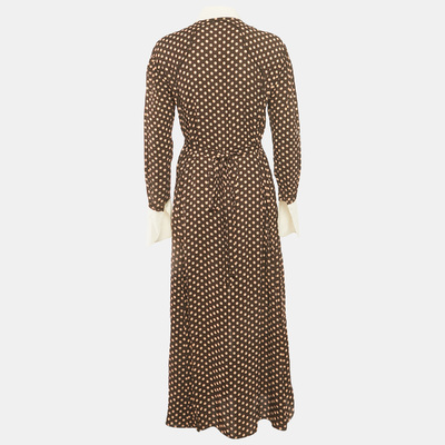 Chloé brings an effortless bohemian spirit into this maxi dress, crafted in a blend of crepe and silk for light movement. The rich brown base is uplifted with intricate prints, adding depth and visual rhythm. Its flowing cut ensures comfort while radiating elegance, making it a versatile choice for both relaxed daytime gatherings and elevated evening settings.