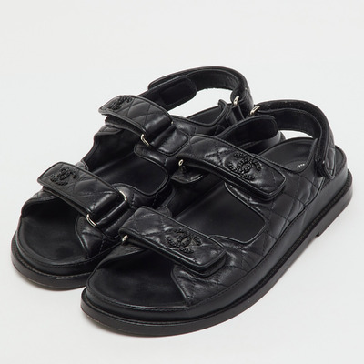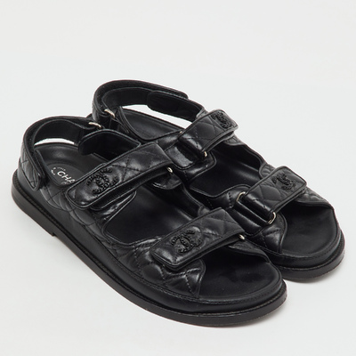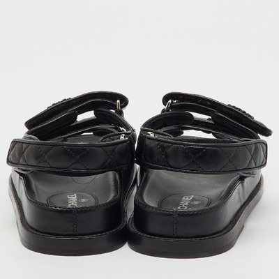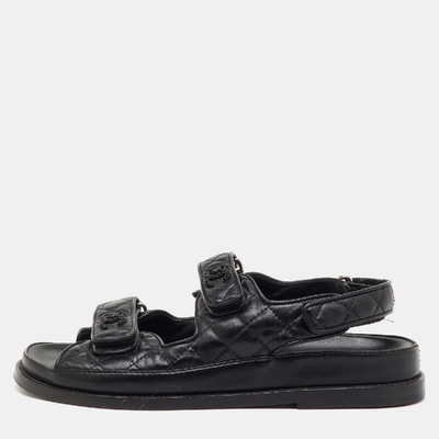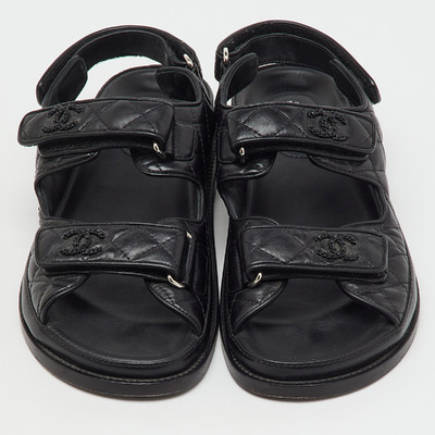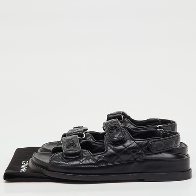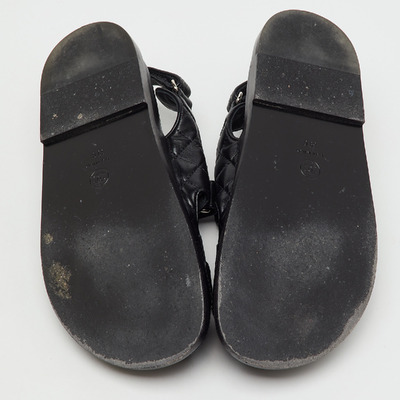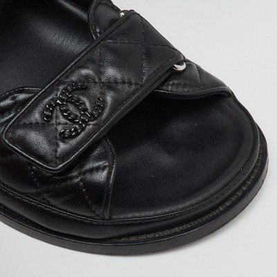 Chanel Black Quilted Leather CC Dad Flat Sandals Size 39 1222729 (чёрный, lpn31019574)
