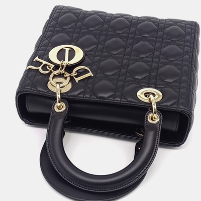 The Dior Black Leather Lady Bag Medium offers a refined, classic design in a versatile size. Crafted from smooth black leather, it features the House’s signature structured shape with a flap closure. Ideal for carrying everyday essentials, this bag combines practicality with a recognizable designer detail, making it a stylish addition to any wardrobe.