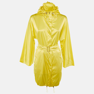 Max Mara City Yellow Stretch Satin Hooded Belted Coat S 1223769 (жёлтый, lpn31019614)