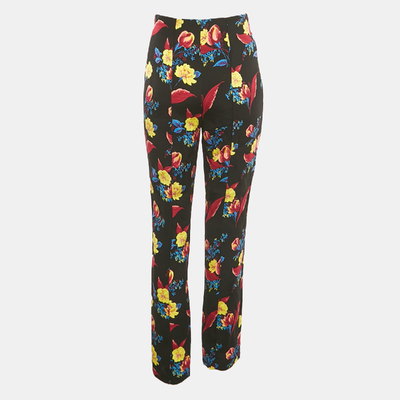 Diane Von Furstenberg Black Floral Print Crepe Trousers S 1223241 - 1