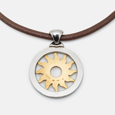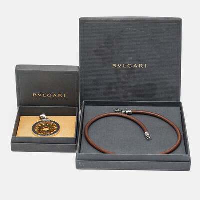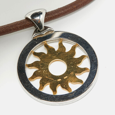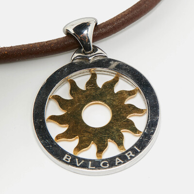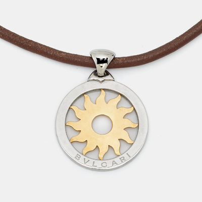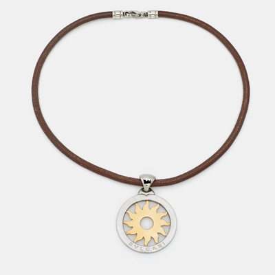 Bvlgari Tondo Sun Stainless Steel 18k Yellow Gold Leather Cord Necklace 1222780 - 1