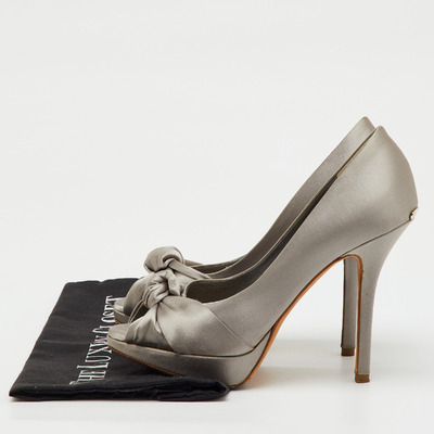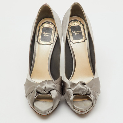 Dior Light Grey Satin Knotted Peep Toe Platform Pumps Size 36 1222694 (lpn31019642)