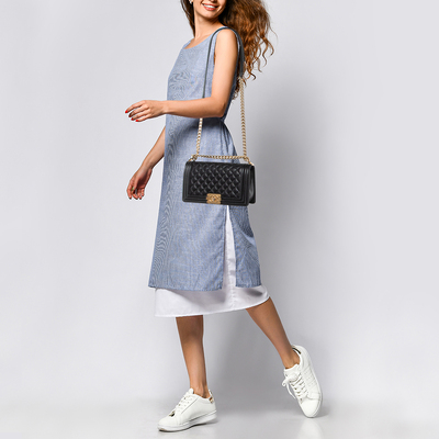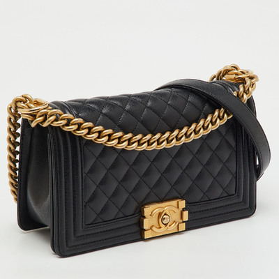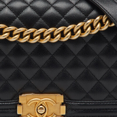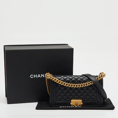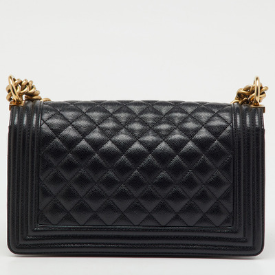 Chanel Black Quilted Caviar Leather Medium Boy Flap Bag 1221760 (чёрный, lpn31019654)