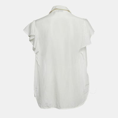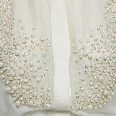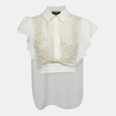 Elisabetta Franchi White Cotton Pearl Embellished Hem Tie Detail Side Open Top M 1221717 - 1