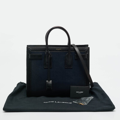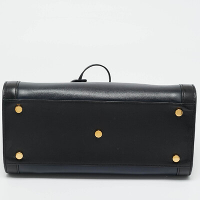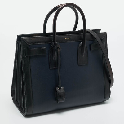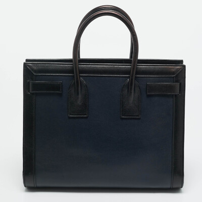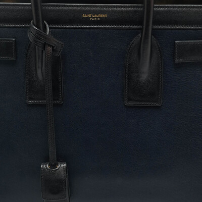 A house icon, the Saint Laurent Sac de Jour tote appears here in a small size with a refined mix of black and navy leather. Structured lines and accordion sides highlight the design’s balance of utility and elegance. A modern classic that embodies Parisian minimalism, it is an enduring piece for work, travel, and polished everyday styling.