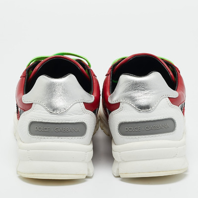 Dolce and Gabbana’s Jamaica sneakers mix multicolour leather with skull and crossbones printed canvas for a rebellious twist. The bold graphic nods to the maison’s penchant for statement motifs. Wear them with pared back outfits to let the print dominate.