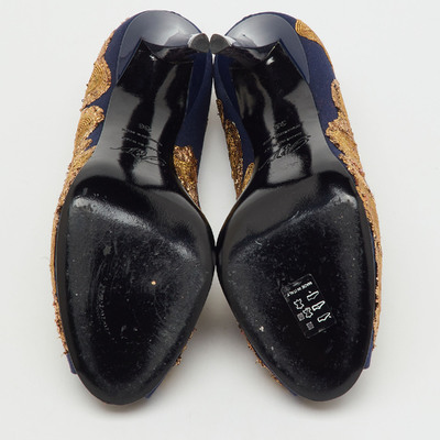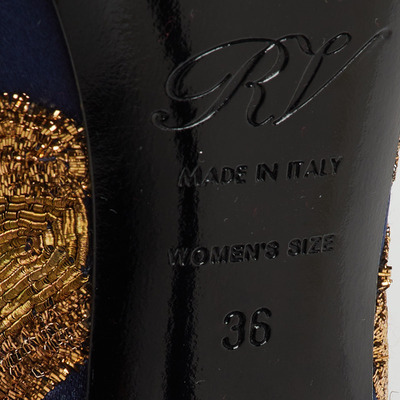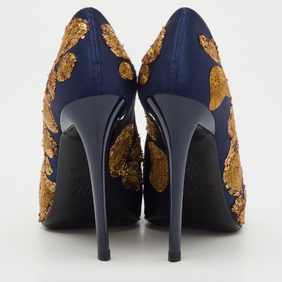 Roger Vivier Navy Blue/Gold Embroidered Satin Peep Toe Platform Pumps Size 36 1222691 (lpn31019713)