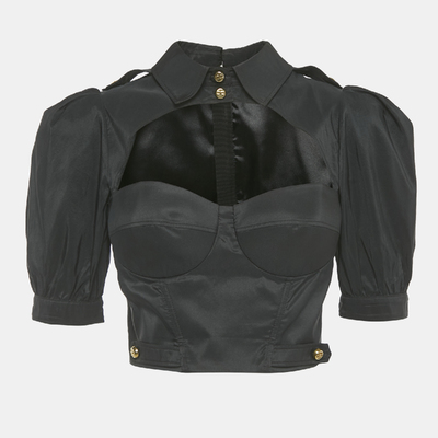 Elisabetta Franchi’s bustier crop top in black polyester blends structure with modern ease. The contoured fit frames the figure while staying sleek. Wear it with high waisted trousers or layered under a blazer for a chic evening ensemble.