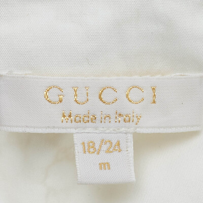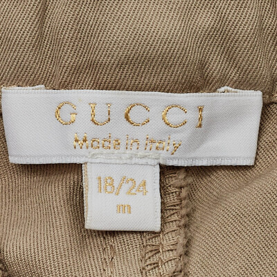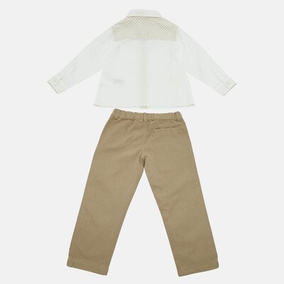Classic yet cute, this Gucci set includes a white shirt and brown cotton pants for a refined toddler look. Soft fabrics ensure comfort while signature Gucci detailing adds luxury flair. Perfect for special occasions or smart casual styling.