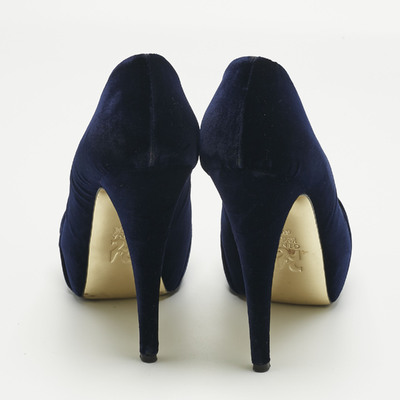 Gina’s Claire platform pumps bring drama with a touch of softness. Crafted in plush purple velvet, they rise on a bold platform and high heel, while the round toe is finished with ruching that catches the light in gentle folds.