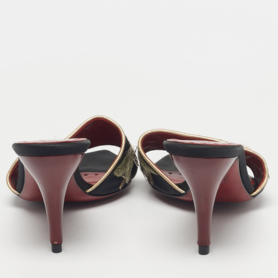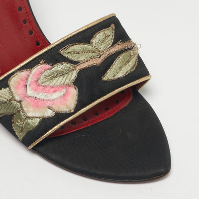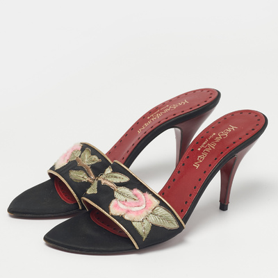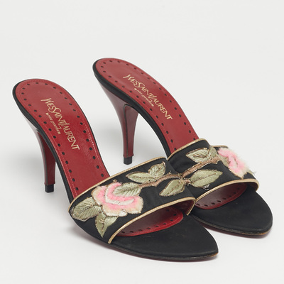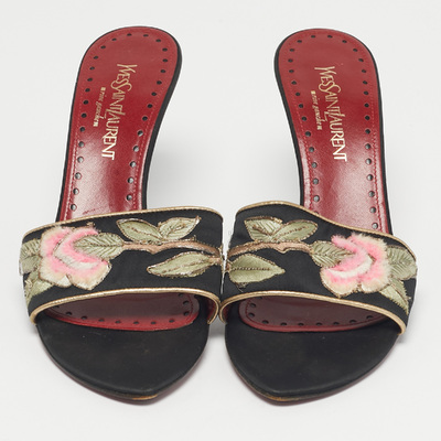 These Saint Laurent slides feature leather along suede exterior and adorned with delicate floral embroidery on the vamps. The slip on design ensures ease while adding a romantic touch. A chic option to pair with dresses or relaxed tailoring.
