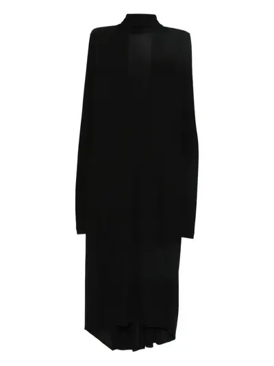 black high neck long sleeves asymmetric hem rear slit