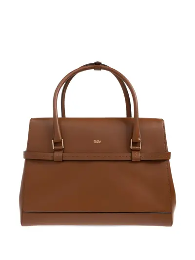 brown top handle buckle fastening flap closure feet at base