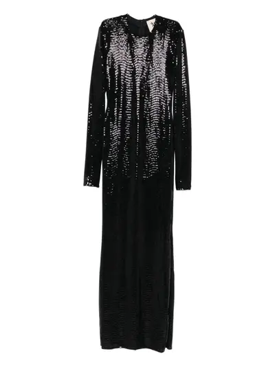black sequin embellishment long sleeves round neck rear zip fastening floor-length