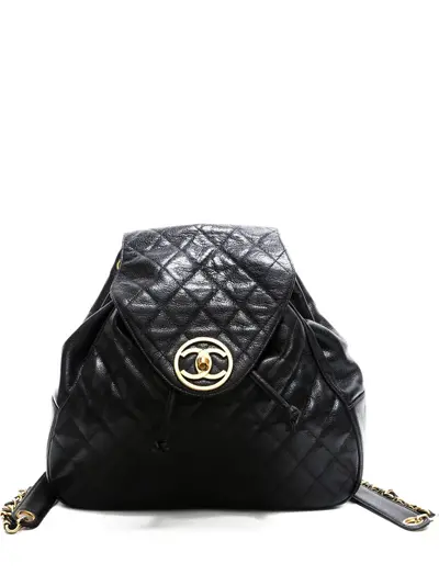 1989-1991 black 1843469 quilted gold-tone hardware chain-link detailing drawstring fastening top handle Condition: GOOD. This previously owned and used item is in good condition with minimal signs of use. This may include fading of material or plating and scratches.