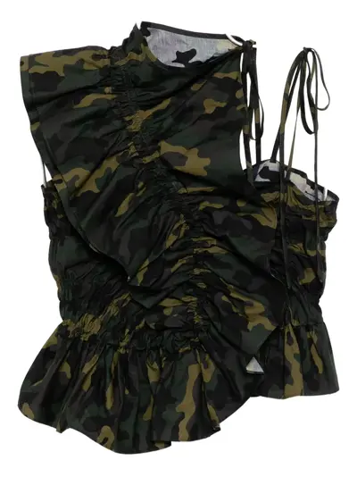 Juun.J Unbalanced Camo Shirring top 32009570 (lpn31020043)
