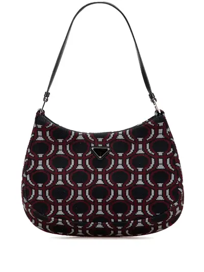 jacquard knit body with leather trim flat leather shoulder strap open top with magnetic snap closure interior slip pocket black This item has no inclusions. Condition: EXCELLENT. This previously owned item is in near-perfect condition with no signs of damage or use. Please refer to the photos on this product page for a detailed view of the item, including any damages declared.