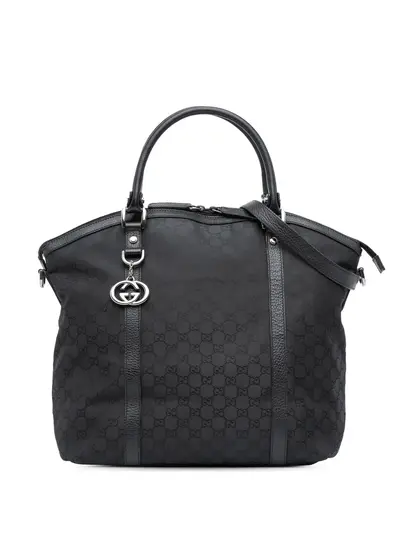 The Dome satchel features a canvas body with leather trim, rolled leather handles, a detachable flat leather strap, a top zip closure, and interior zip and slip pockets. Black. Serial Number: 339551 493075. Inclusions: shoulder strap. Condition: GOOD. This previously owned and used item is in good condition with minimal signs of use. This may include fading of material or plating and scratches. Please refer to the photos on this product page for a detailed view of the item, including any damages declared.