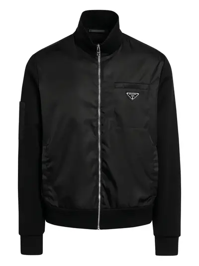 black zip fastening high neck chest pocket logo plaque long sleeves