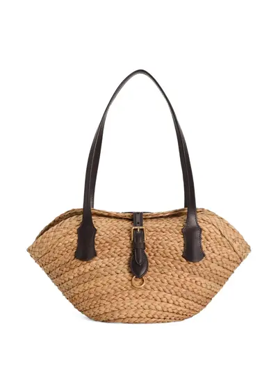 beige woven design top handles buckle detail gold-tone hardware ring detail