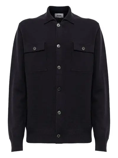 blue button fastening point collar long sleeves two chest patch pockets buttoned cuffs