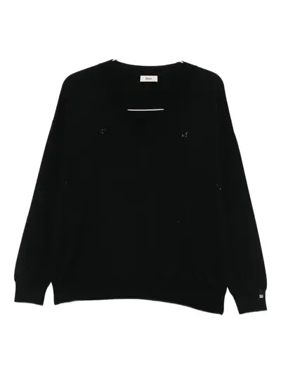 black wool V-neck long sleeves ribbed hem ribbed cuffs