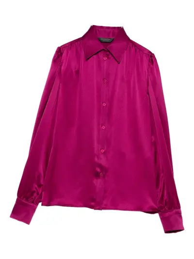 fuchsia pink silk front button fastening long sleeves point collar buttoned cuffs
