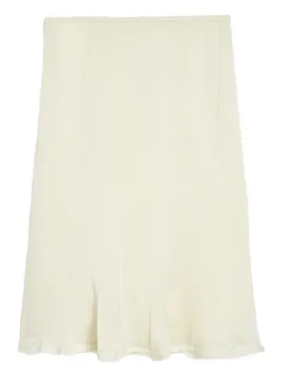 beige ribbed texture flared hem straight waistband concealed zip fastening A-line shape