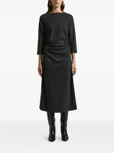 grey boat neck three-quarter sleeves side slit gathered detail midi length