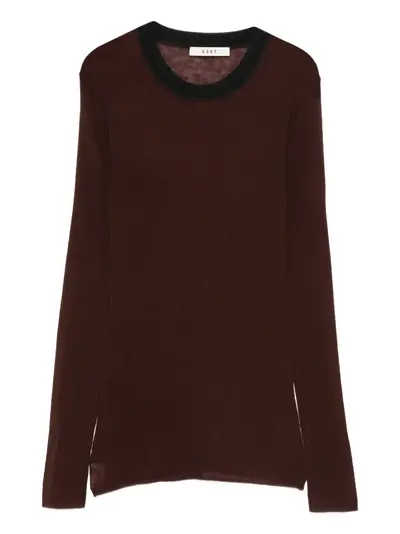 chocolate brown round neck long sleeves fine knit ribbed trim