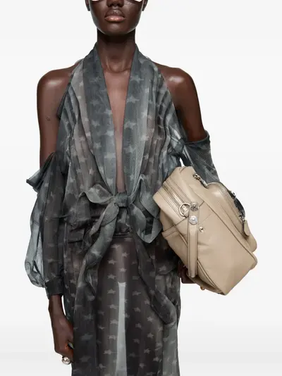 grey star print cold shoulders bow detail sheer fabric V-neckline