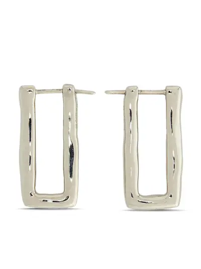 silver-tone polished finish sculpted hoop design rectangle shape snap-fit fastening for pierced ears These earrings come as a pair.