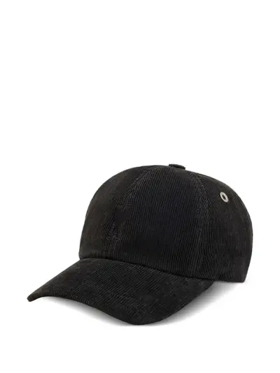 black corduroy texture embroidered detail curved peak adjustable strap eyelets