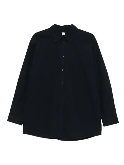 midnight blue button fastening long sleeves point collar chest pocket straight hem