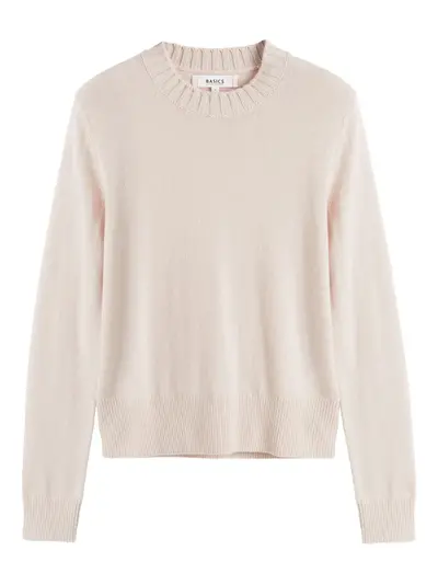 bone beige ribbed detailing round neck long sleeves fine knit straight hem