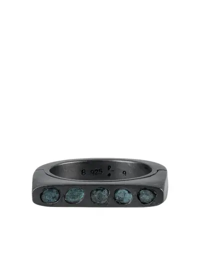 black sterling silver oxidised finish pavé-set blue diamond embellishment Normal everyday use and external agents may reduce the lustre of gemstones and gold surfaces. To maintain, use specific, non-abrasive products specially meant for cleaning jewellery.