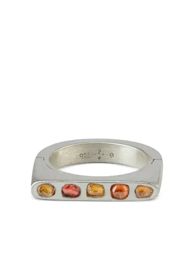 silver-tone streling silver pavé-set orange sapphire embellishment Normal everyday use and external agents may reduce the lustre of gemstones and gold surfaces. To maintain, use specific, non-abrasive products specially meant for cleaning jewellery.