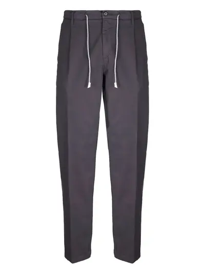 black drawstring waistband front button and zip fastening belt loops side slit pockets